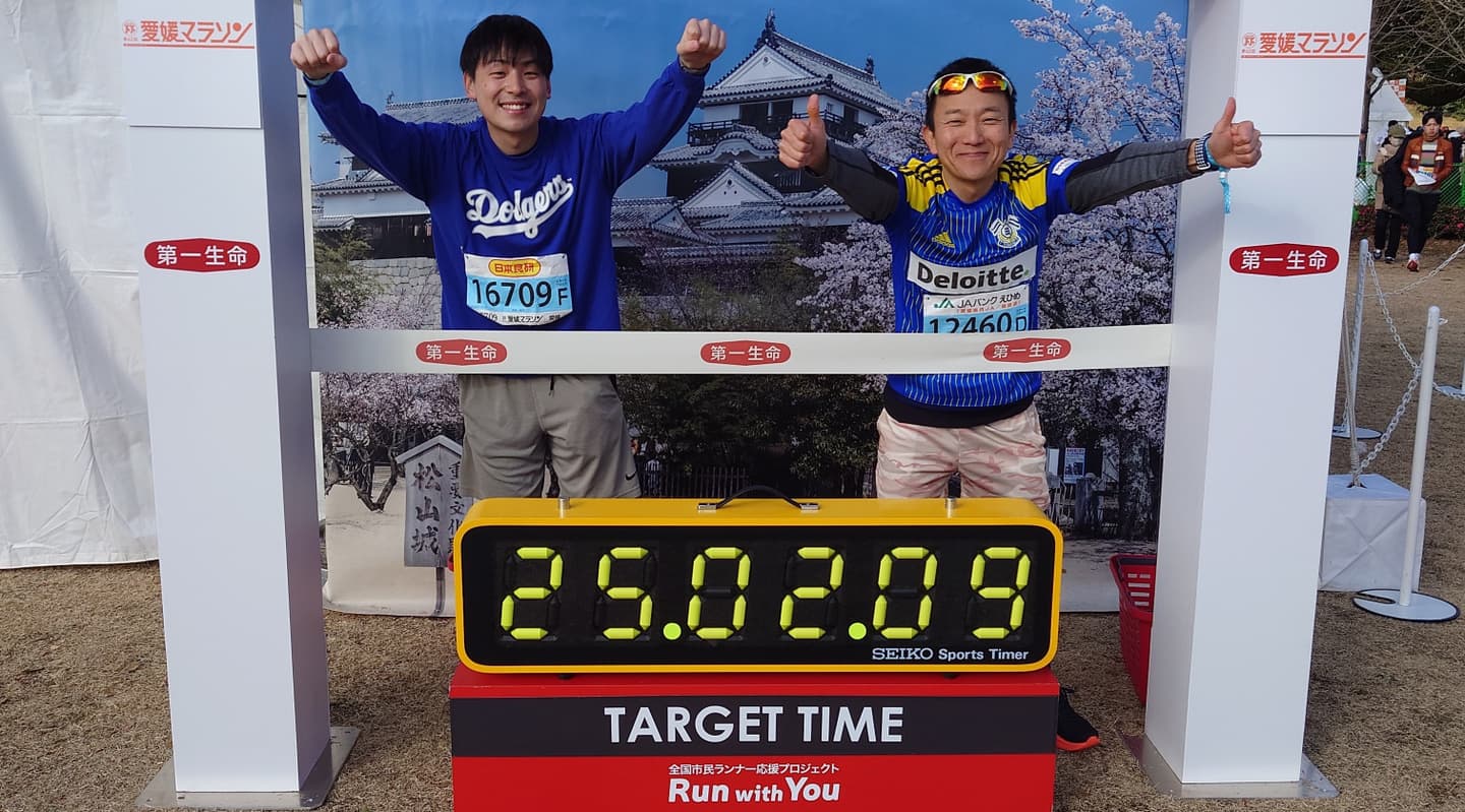 愛媛マラソンはもちろん、今治シティマラソンや地域の駅伝などいろいろな大会に参加しています。フルマラソンに限らず、それぞれの目標を設定して活動しています。